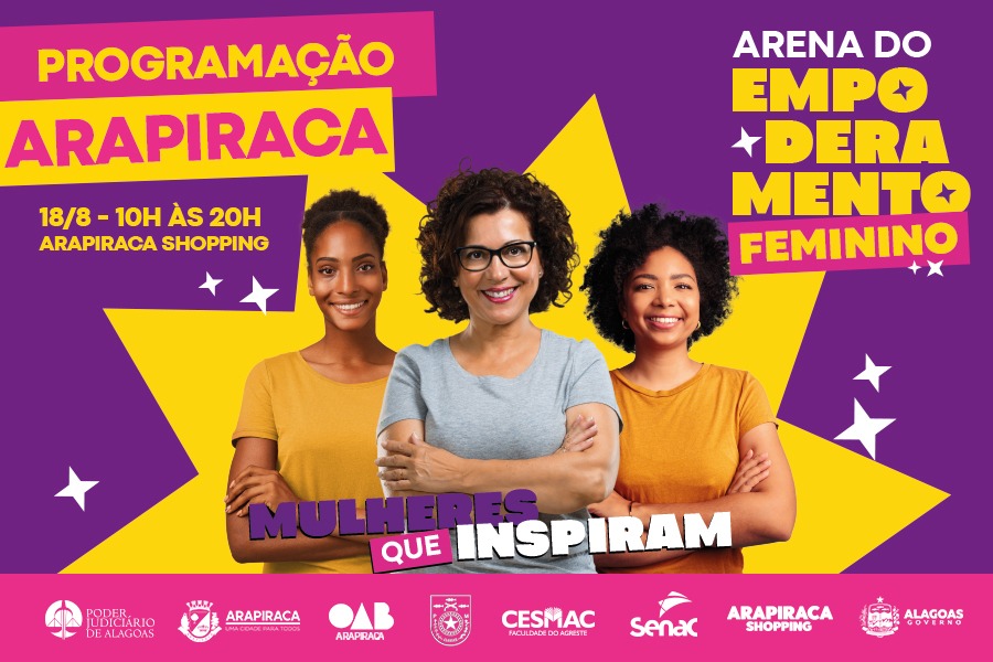 O Poder Judiciário de Alagoas levará serviços de saúde e ações de conscientização contra a violência doméstica ao Arapiraca Shopping nesta sexta-feira (18). Denominado “Arena do Empoderamento Feminino”, o evento ocorre como parte das atividades do Agosto Lilás, com apoio da Presidência do Tribunal de Justiça e a parceria de outros órgãos.