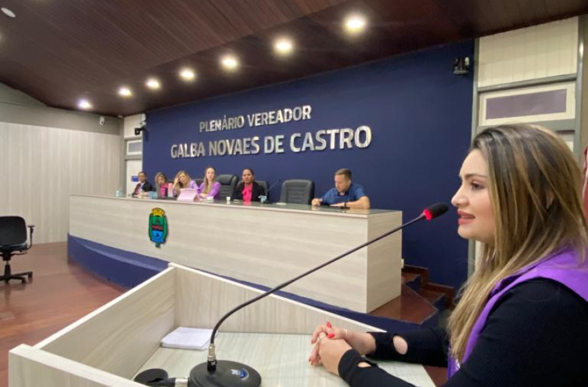 Nesta sexta-feira (18), a Secretaria da Mulher, Pessoas com Deficiência, Idosos e Cidadania (Semuc) discursou na audiência pública que debateu a implementação de soluções eficazes para combater a violência contra a mulher. A sessão fez parte da programação de ações de Agosto Lilás do Município.