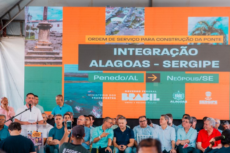O que antes era sonho, agora começa a se tornar realidade. O governador Paulo Dantas participou, neste sábado (13), da assinatura da Ordem de Serviço para a construção da ponte ligando as cidades de Penedo e Neópolis (SE), por meio da BR-349. A construção beneficiará mais de 80 mil pessoas diretamente e está orçada em R$ 210 milhões, oriundos do Governo Federal. O evento contou com a participação dos ministros Renan Filho (Transportes), Márcio Macêdo (Secretaria da Presidência da República) e do governador de Sergipe, Fábio Mittidieri.
