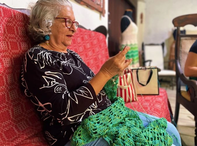 Outra que iniciou ainda na infância no crochê foi a artesã cearense Josélia. “Eu aprendi crochê desde os meus nove anos, com uma vizinha, quando eu morava em Sergipe. Ela estava tecendo uma colcha, belíssima e notou meu interesse. Me deu uma agulha e me ensinou. Aí eu comecei a fazer roupinha para as minhas bonecas”, recorda.