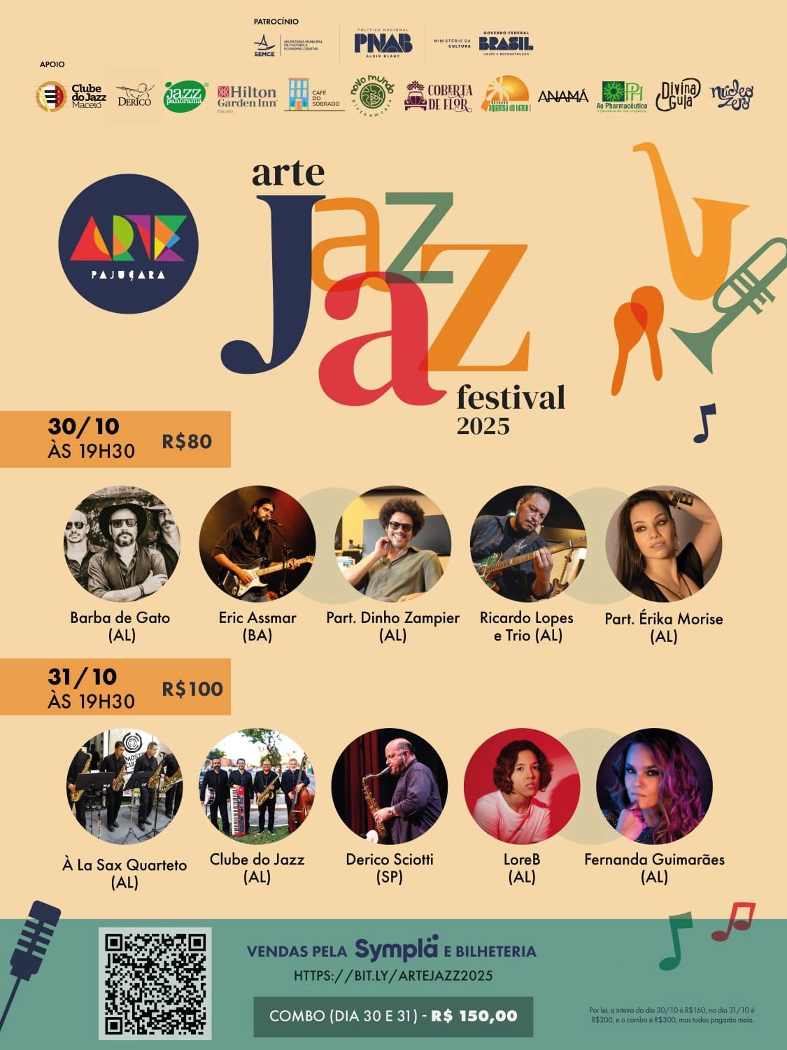 🎟️ Ingressos antecipados na Sympla: https://www.sympla.com.br/evento/festival-arte-jazz---arte-pajuCara/3159795